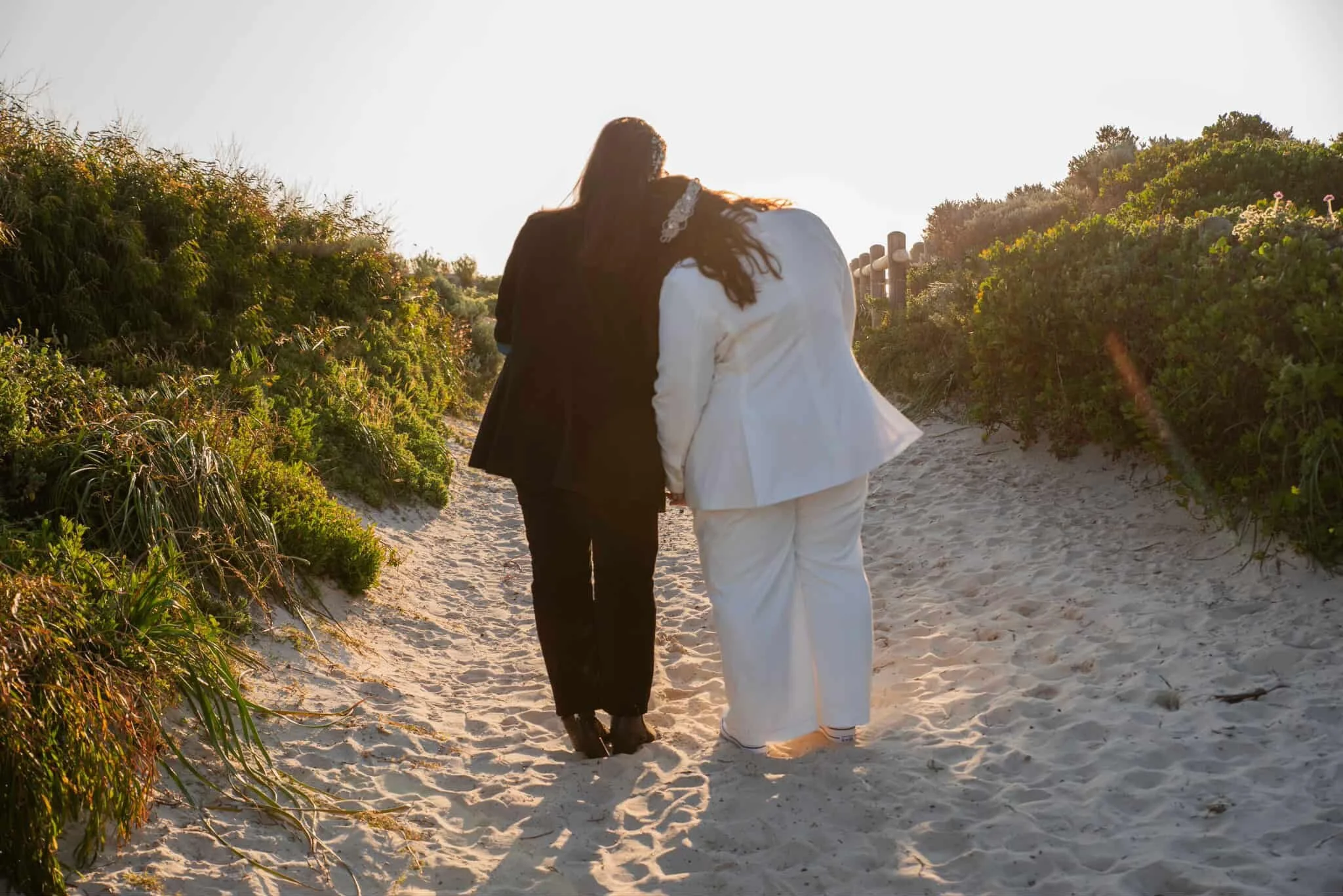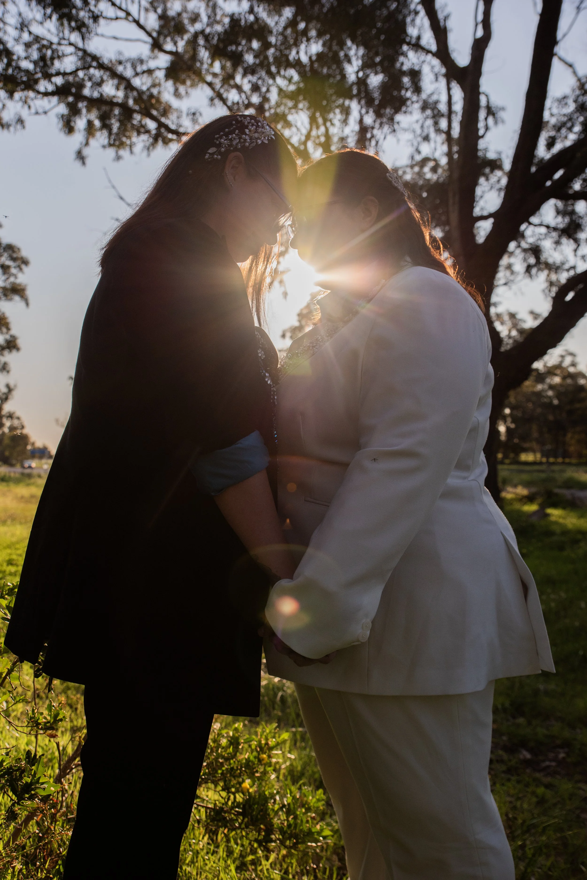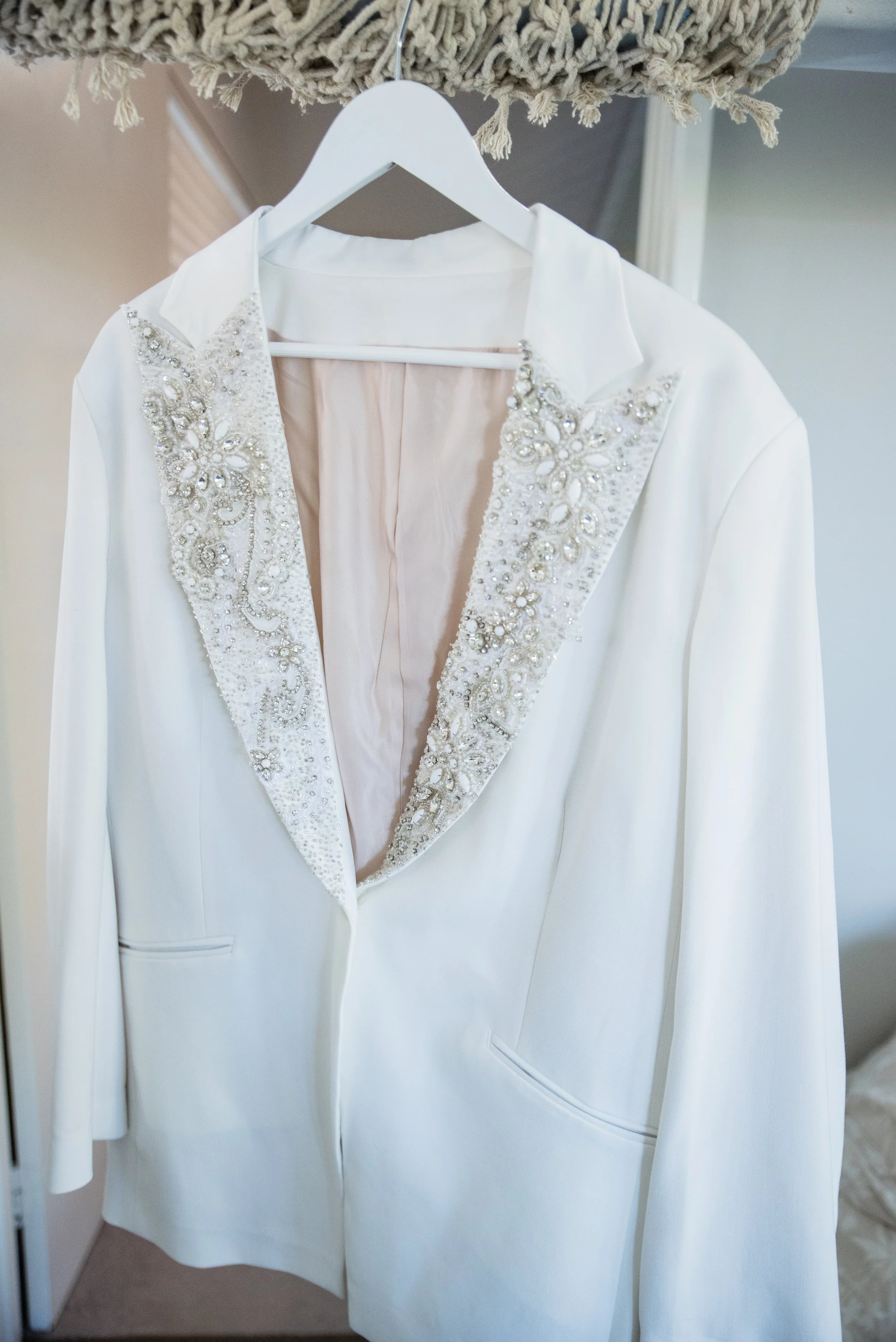 When it came to finding their wedding attire, Both brides wore stunning custom suits designed by The Bridal Couturier. Rebekah says the process was effortless.